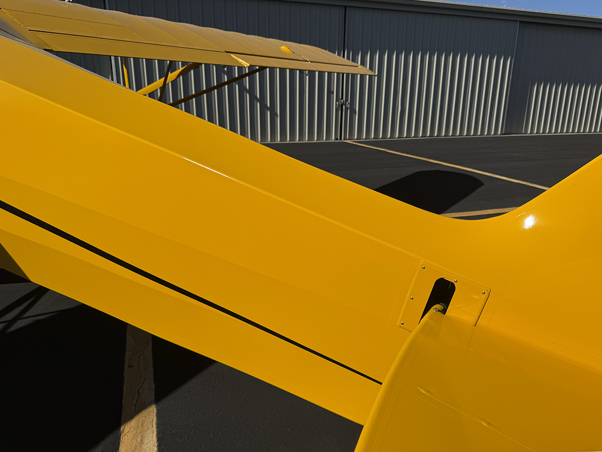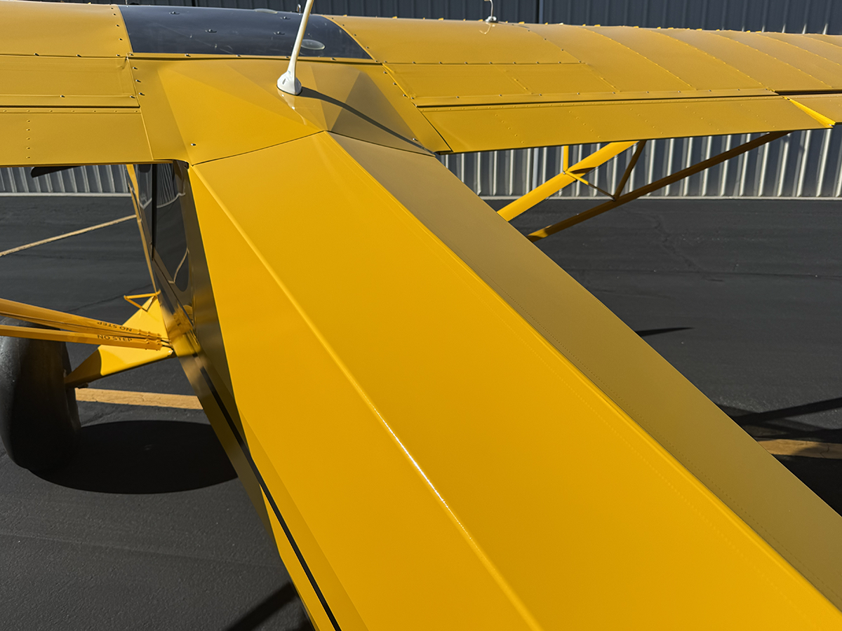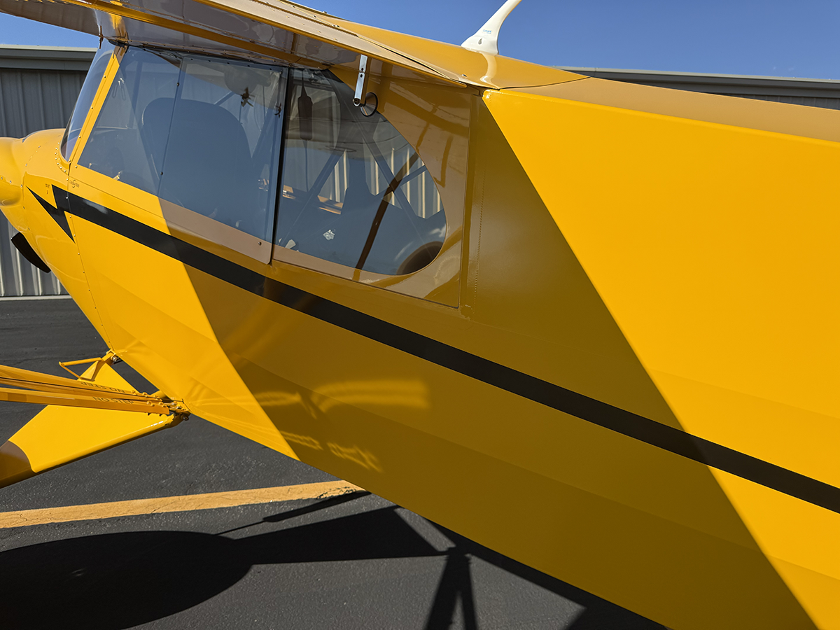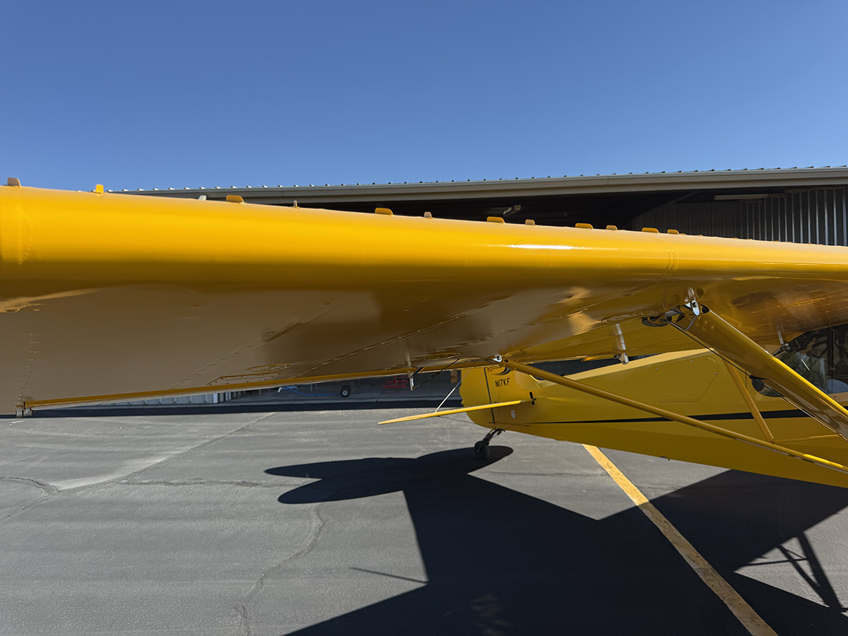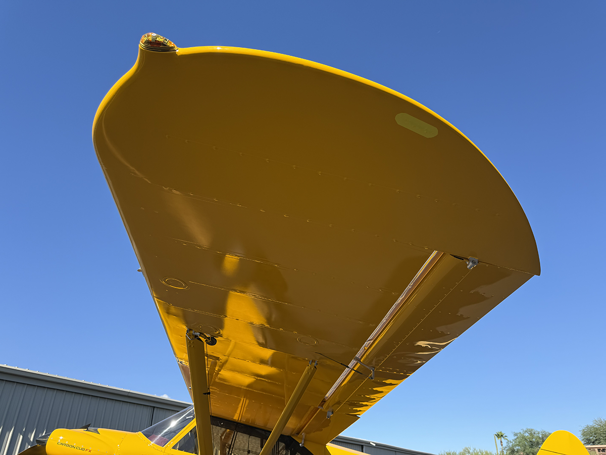Exterior - Overall, the exterior of this Carbon Cub FX2 is in really nice condition. The paint is rated a 9+ and looks nearly factory new. The fabric is in outstanding condition, with only one minor exception on the outboard left wing where the aircraft lightly grazed a bush during landing, resulting in a difficult-to-see imprint on the wing leading edge and very slight damage to fabric in a couple different spots. This damage is not very obvious, though, and has been examined during the Condition Inspection and found to be not an issue. Check out the detailed high-resolution images below to see what I'm talking about.