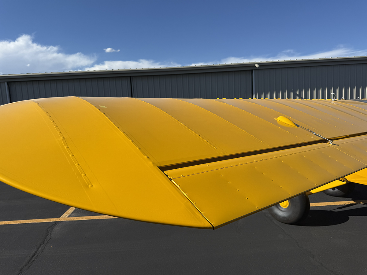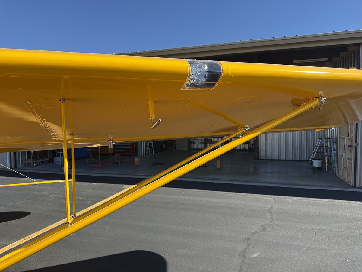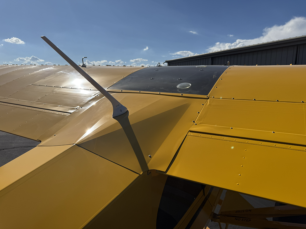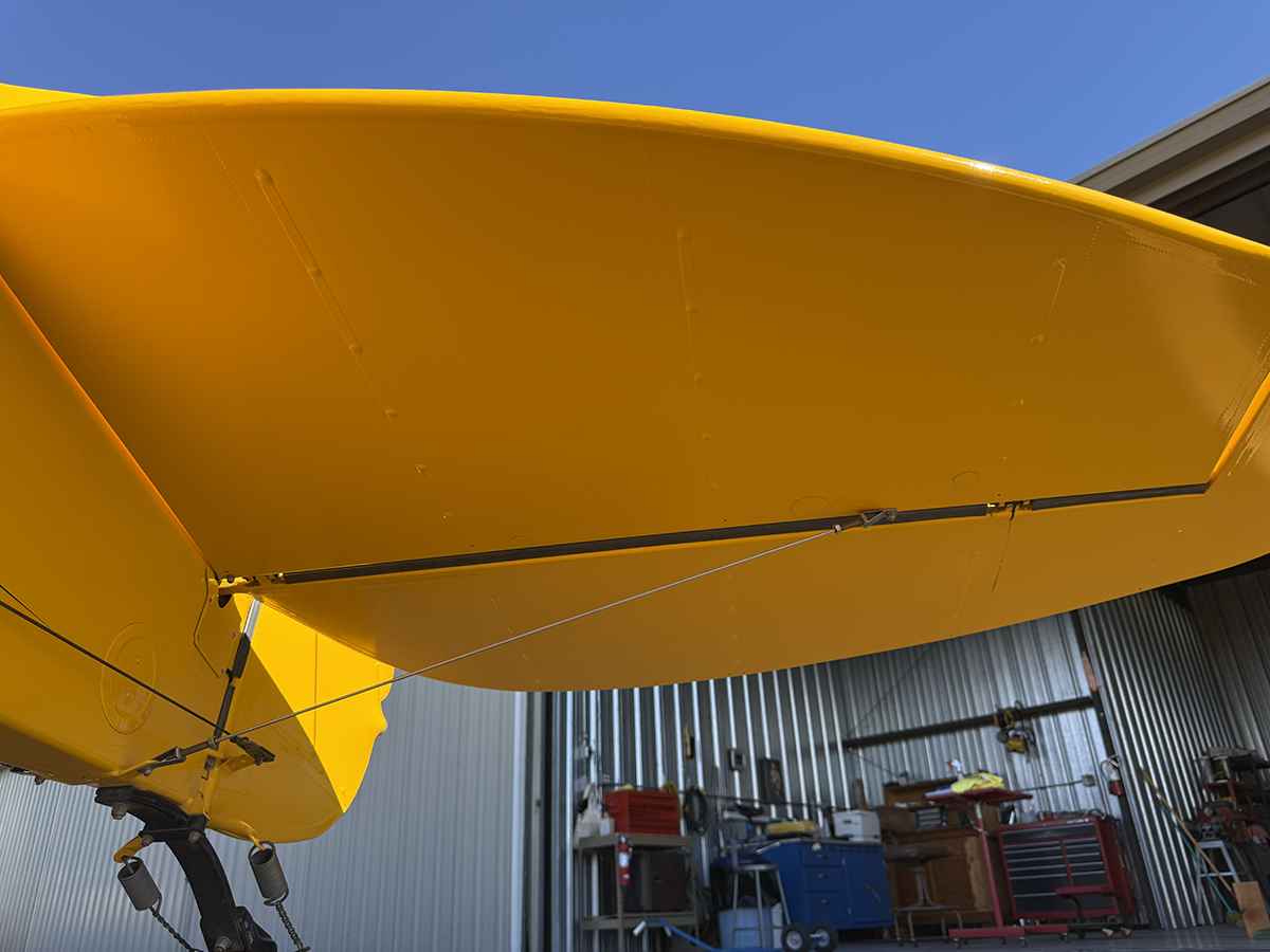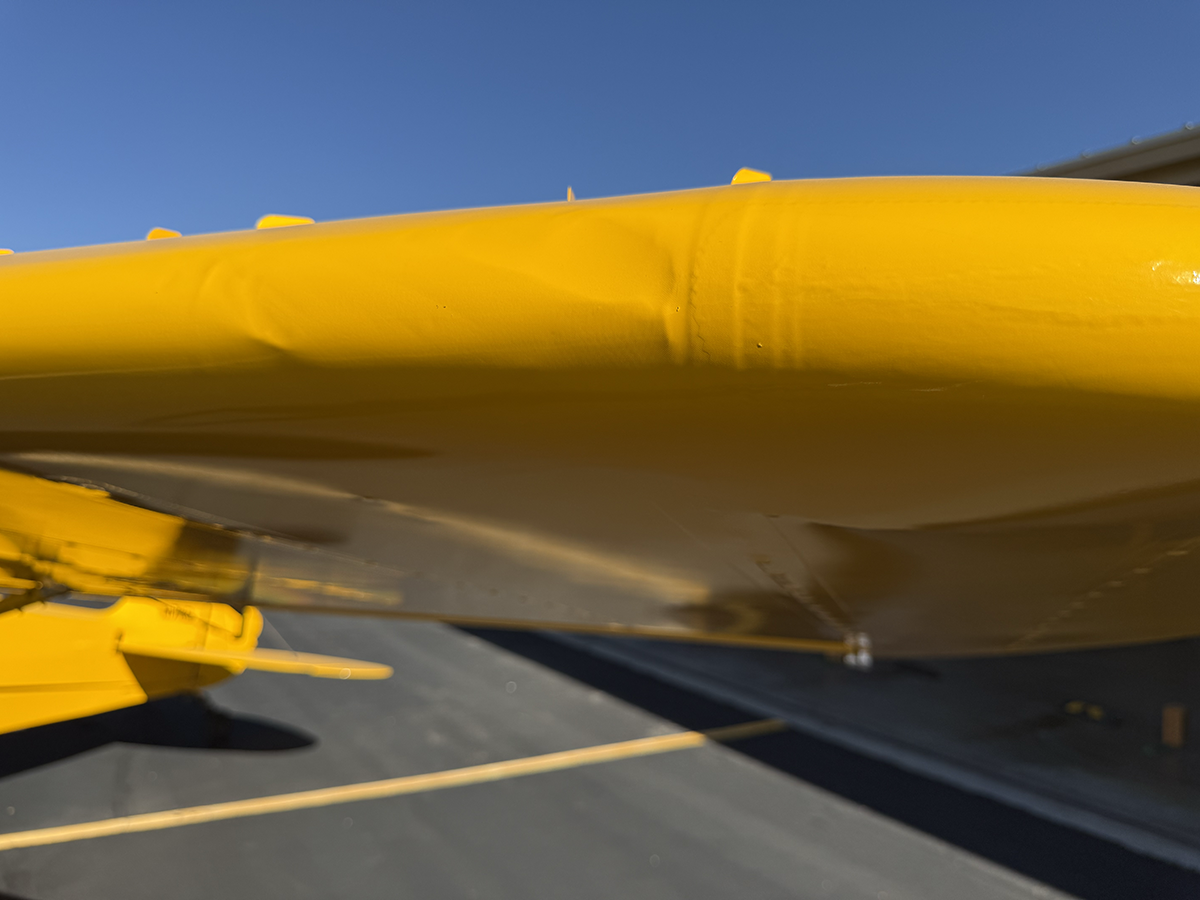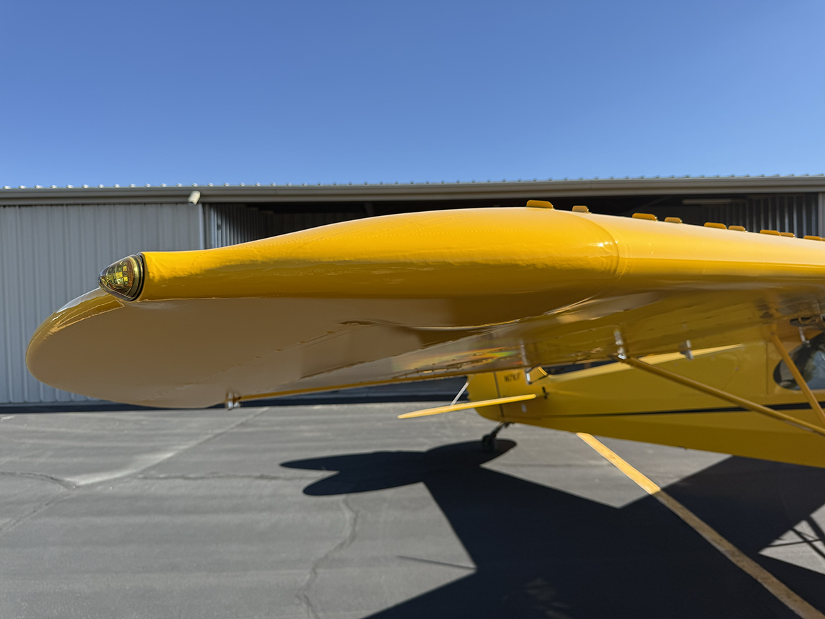 Exterior - Overall, the exterior of this Carbon Cub FX2 is in really nice condition. The paint is rated a 9+ and looks nearly factory new. The fabric is in outstanding condition, with only one minor exception on the outboard left wing where the aircraft lightly grazed a bush during landing, resulting in a difficult-to-see imprint on the wing leading edge and very slight damage to fabric in a couple different spots. This damage is not very obvious, though, and has been examined during the Condition Inspection and found to be not an issue. Check out the detailed high-resolution images below to see what I'm talking about.