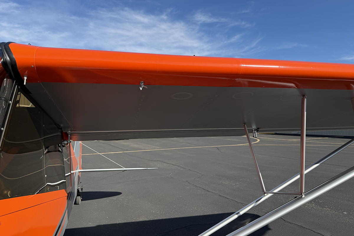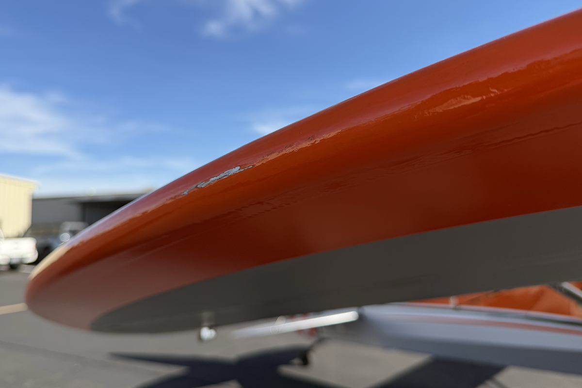 Exterior - The exterior of N266M is in fantastic condition. During the intake process, I looked carefully for issues, and I struggled to find anything wrong with the exterior. The paint is in great condition and has excellent shine and depth. Leading and trailing edges are crisp and undamaged. I saw no fabric issues on the aircraft. The only flaw that I spotted during the close walk-around was a very minor scrape on the right wing tip (see detailed pictures below) - this is something that most people wouldn't notice.