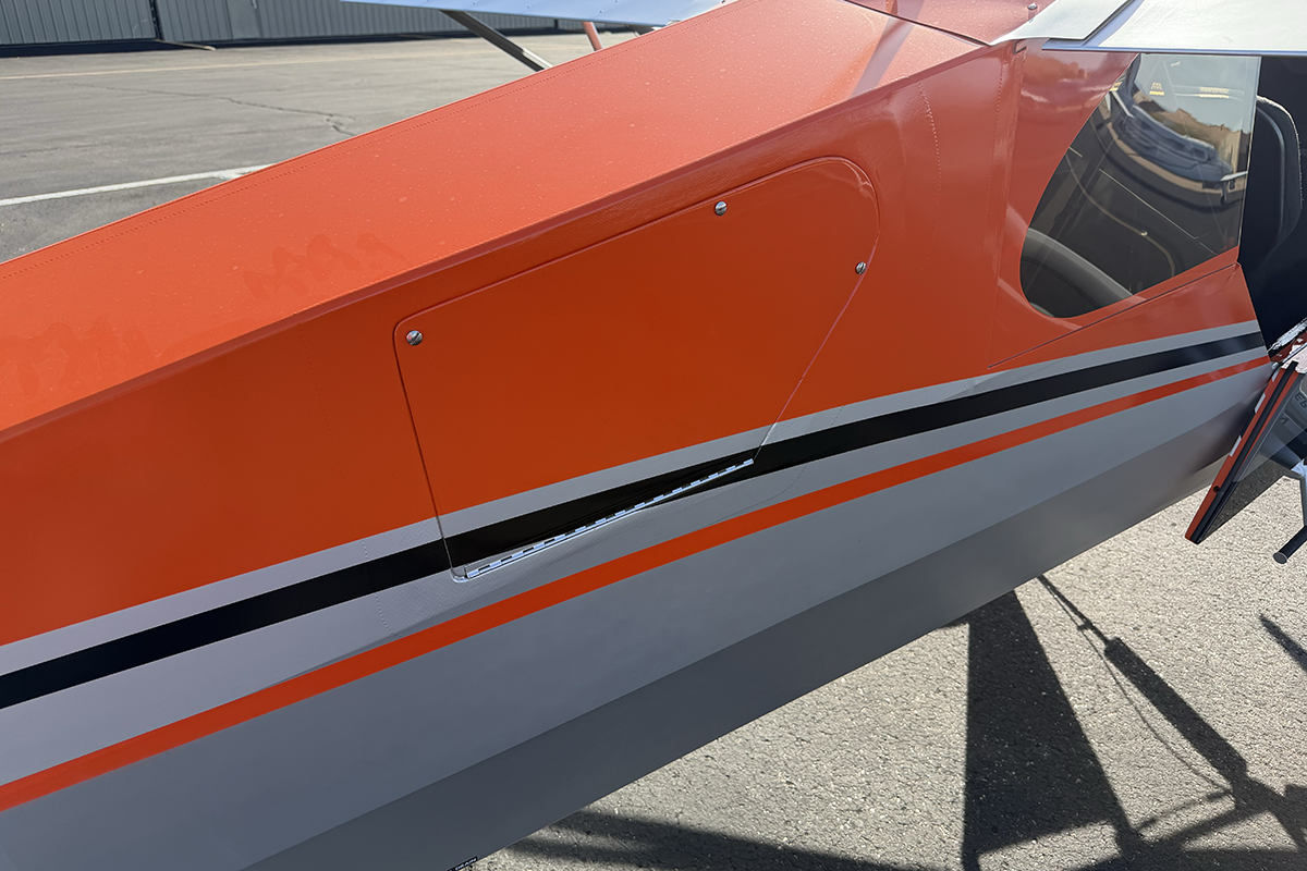This FX-2 model was a factory-assist build, and was appointed with a fantastic factory option Garmin glass panel. Other options include extended range fuel tanks, Garmin 2-axis autopilot, heavy-duty fabric on the undersides, and "checker flag-style" paint scheme on the tail.
