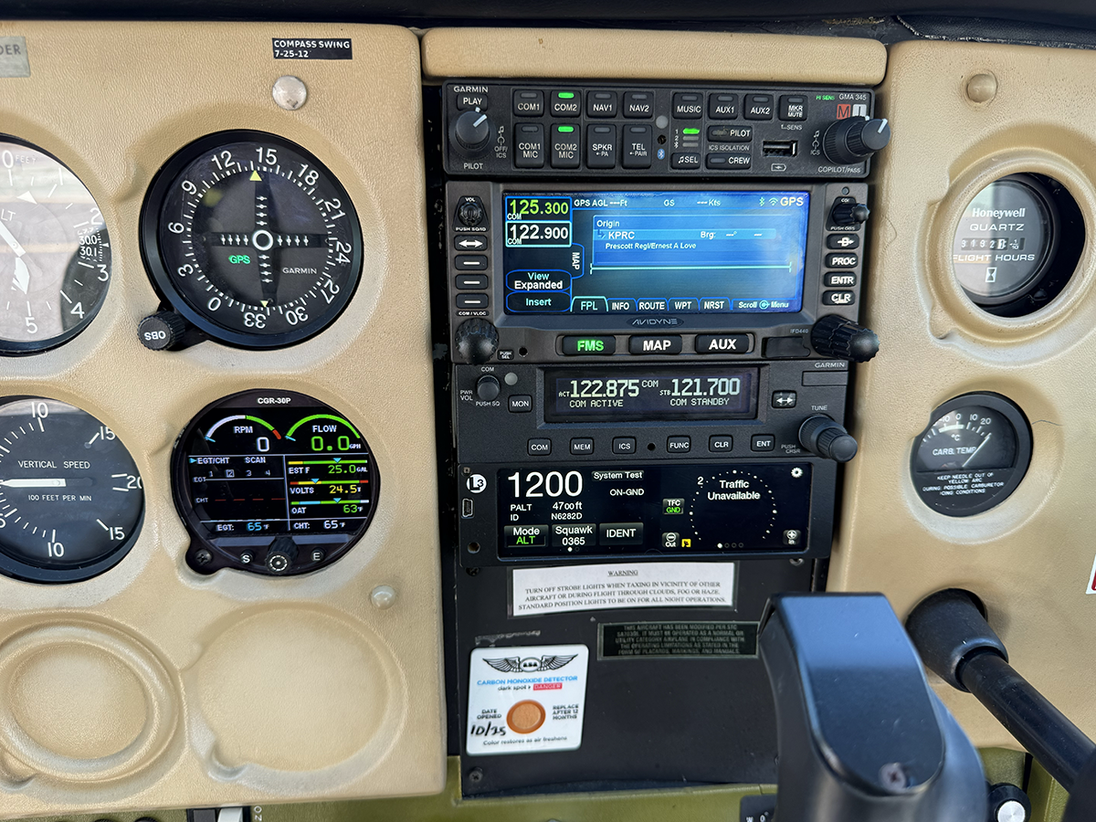 One of the most important features on the panel is a full engine management system contained in the CGR30P with its glass-panel type of display. This provides complete CHT and EGT information, along with standard information like RPM, MP, fuel flow, temps, etc.