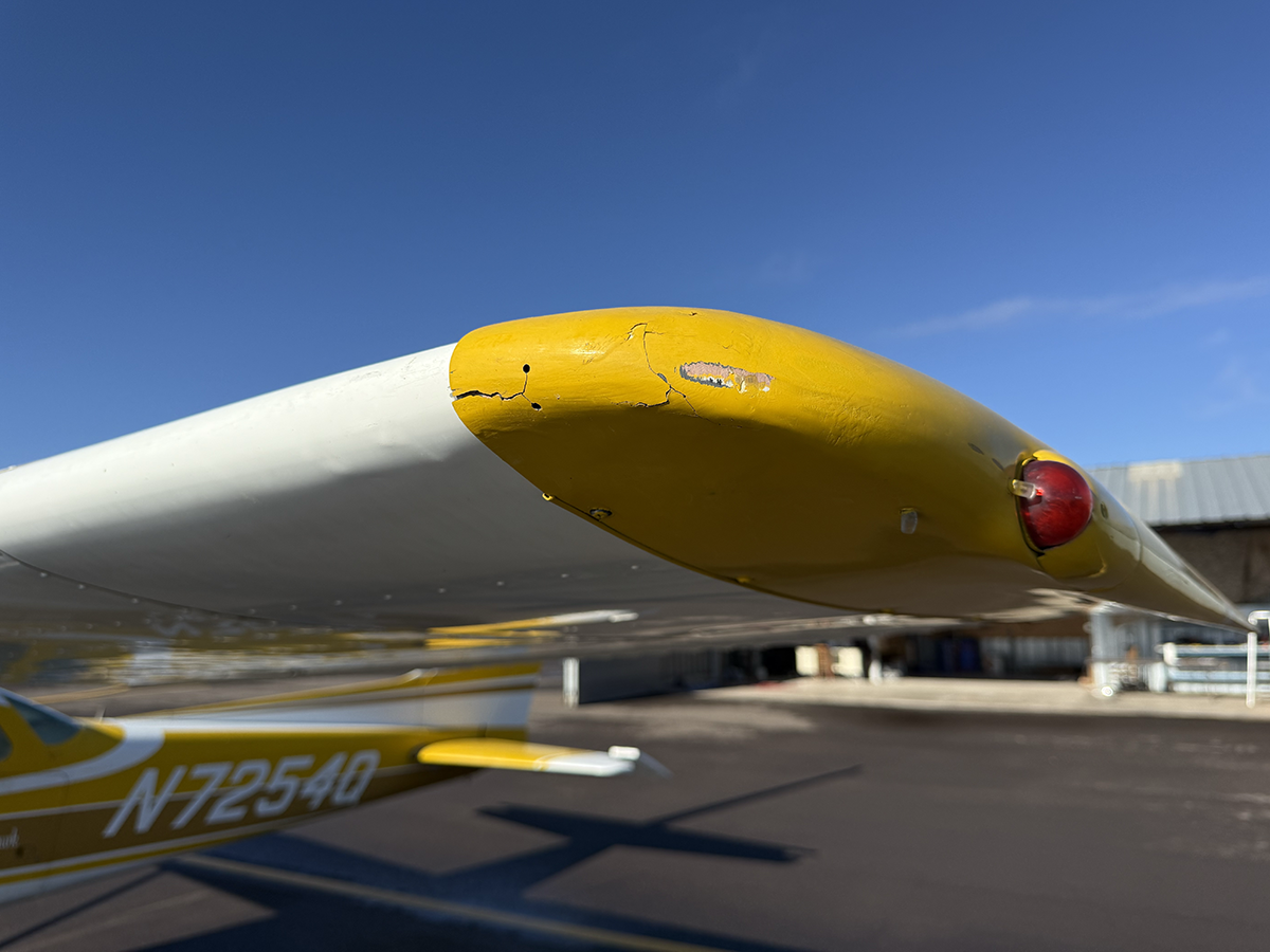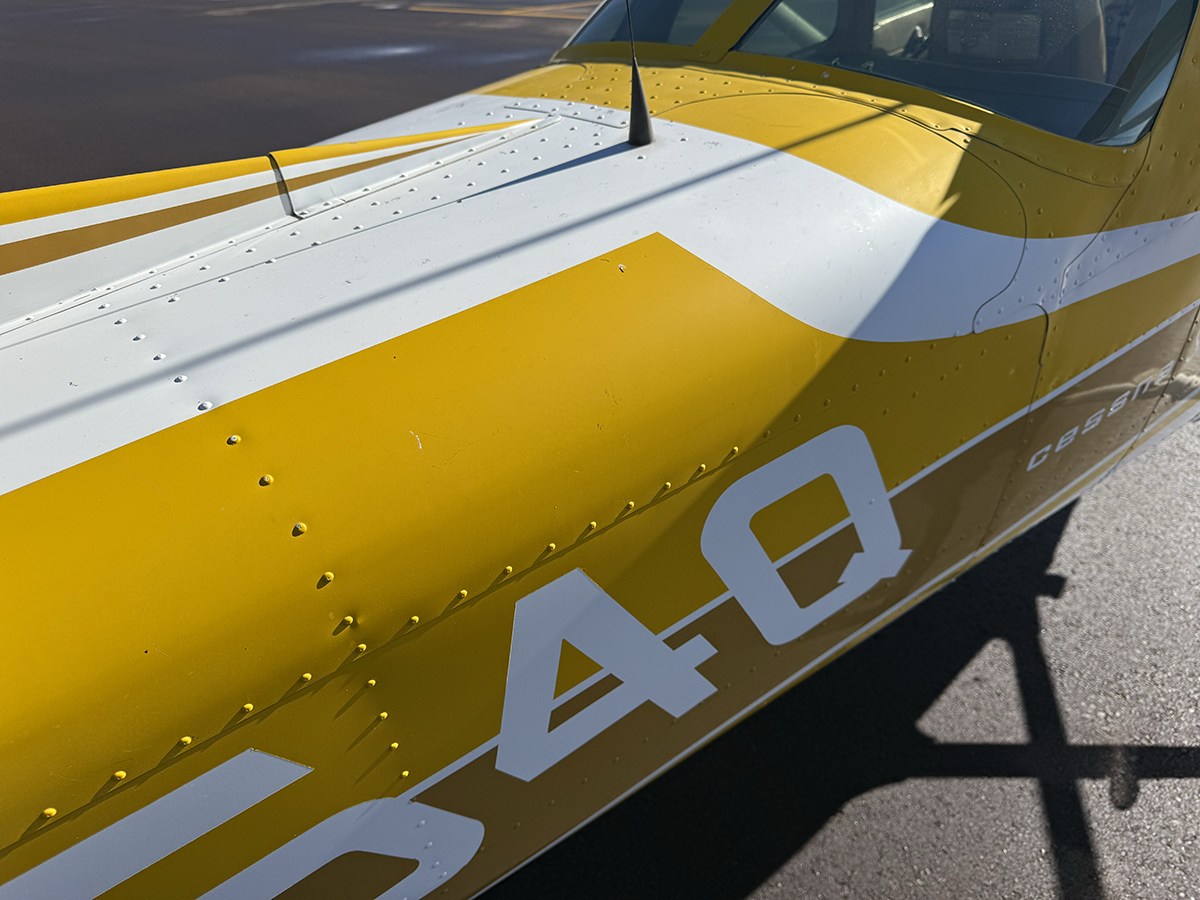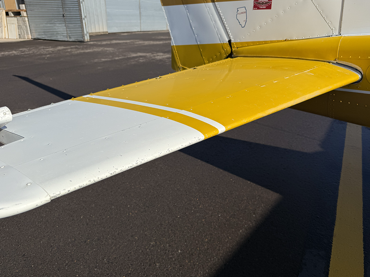 Exterior - Considering that N7254Q has its original paint, the exterior really looks pretty good. The top surfaces are "fair" and exhibit aging and fading in some places. The remaining portions of the paint look good and will likely look great with some additional care. Consistent with its age, there are some paint scuffs and scratches, particularly around the wing leading edges, forward of the fuel filler points.