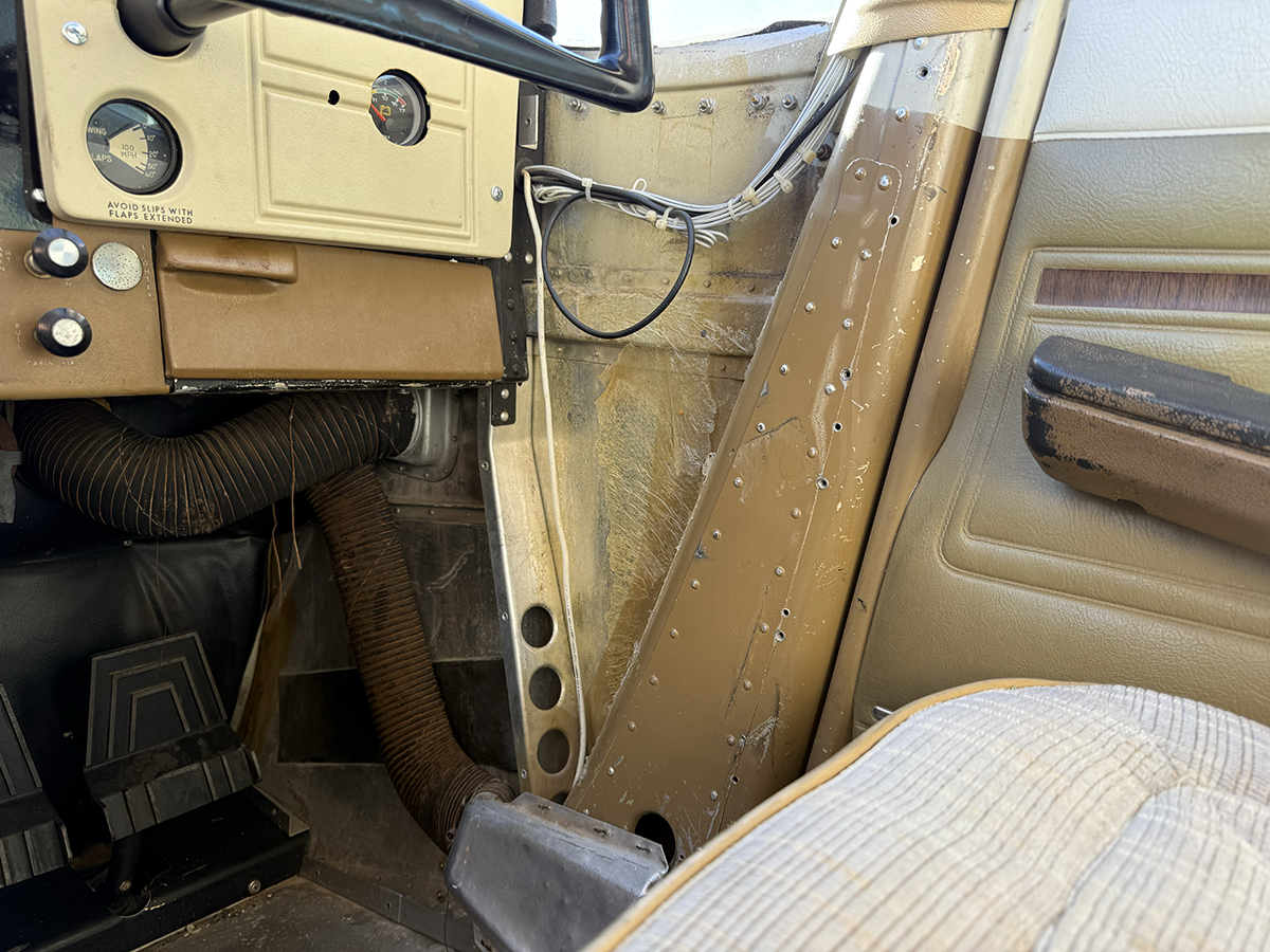 Interior - The spartan interior in N7254Q has good upholstery and carpet. There is a repair to the co-pilot side seatback, but overall the seat covers are in good working condition. The front portion of carpet is missing, as are the front side kick panels and rear side panels. The headliner is intact and clean, but shows some aging. While the interior is fully useable, it could use some attention if you want to have a great looking interior.