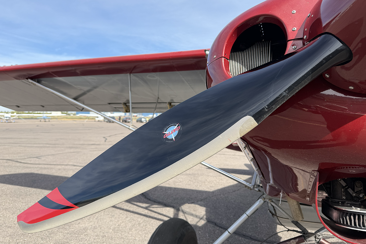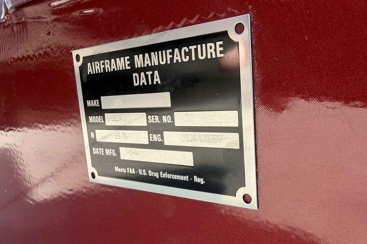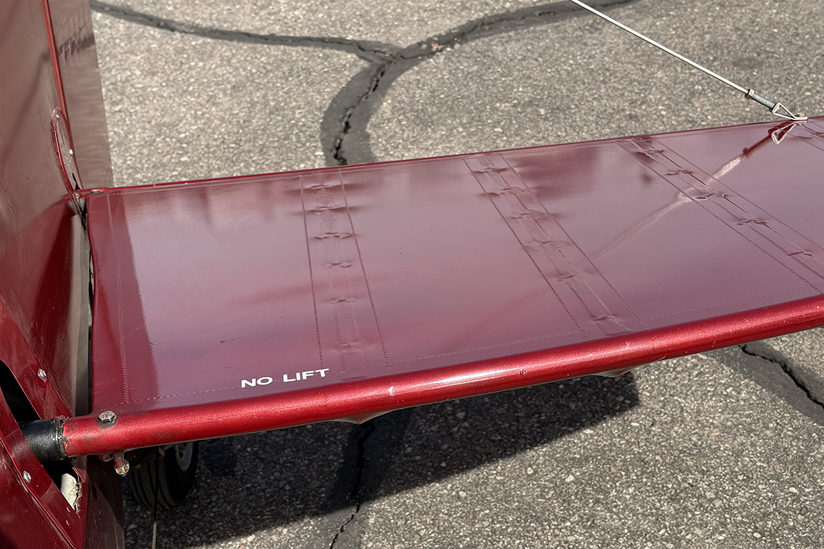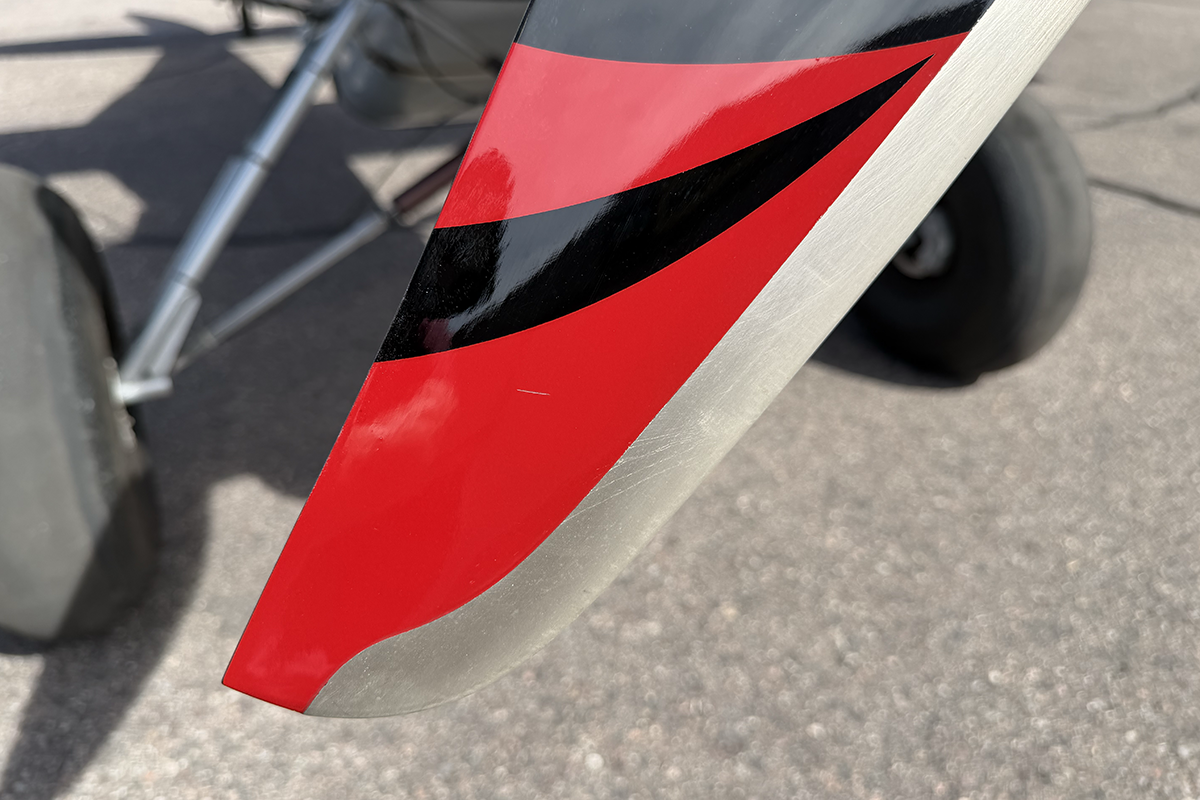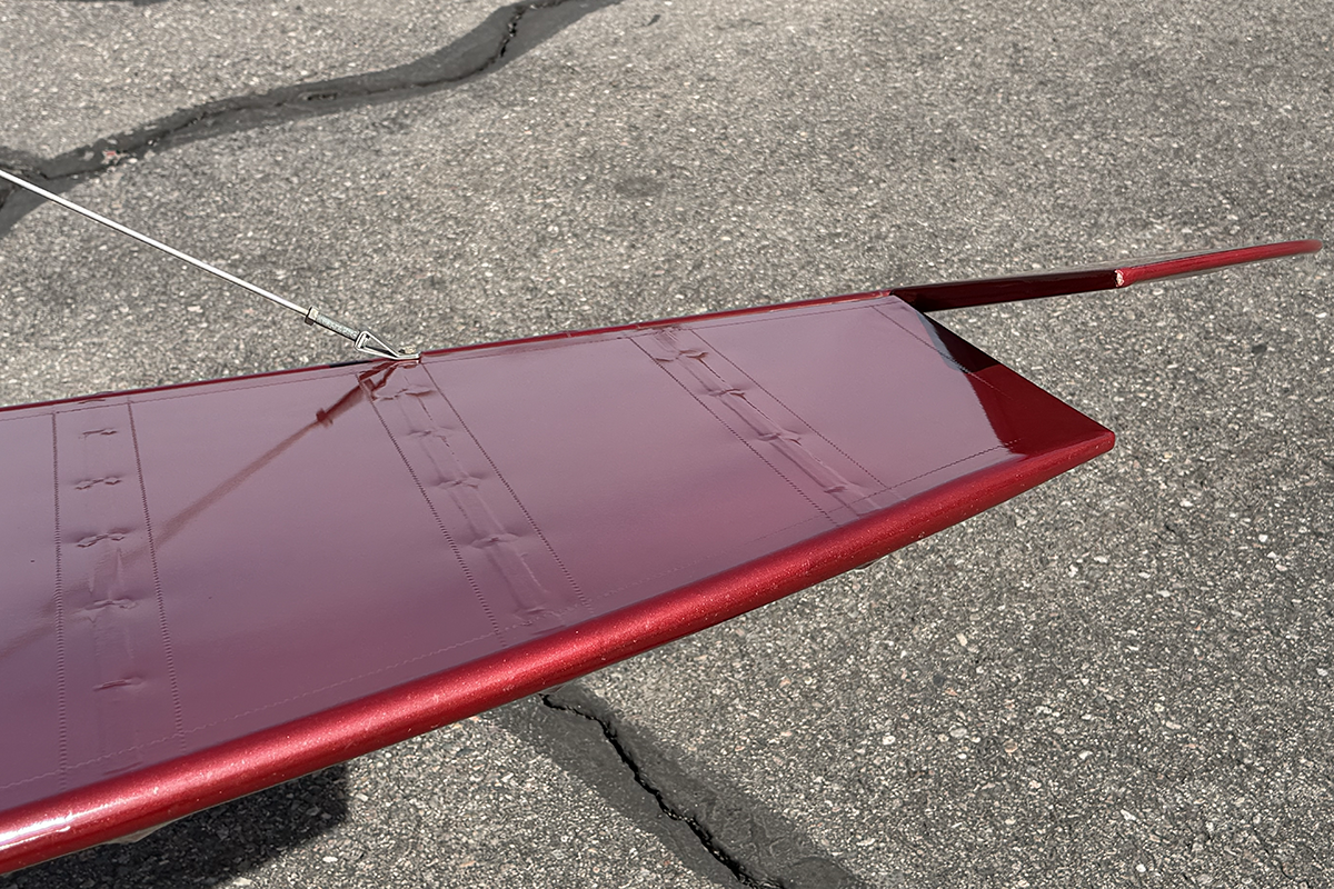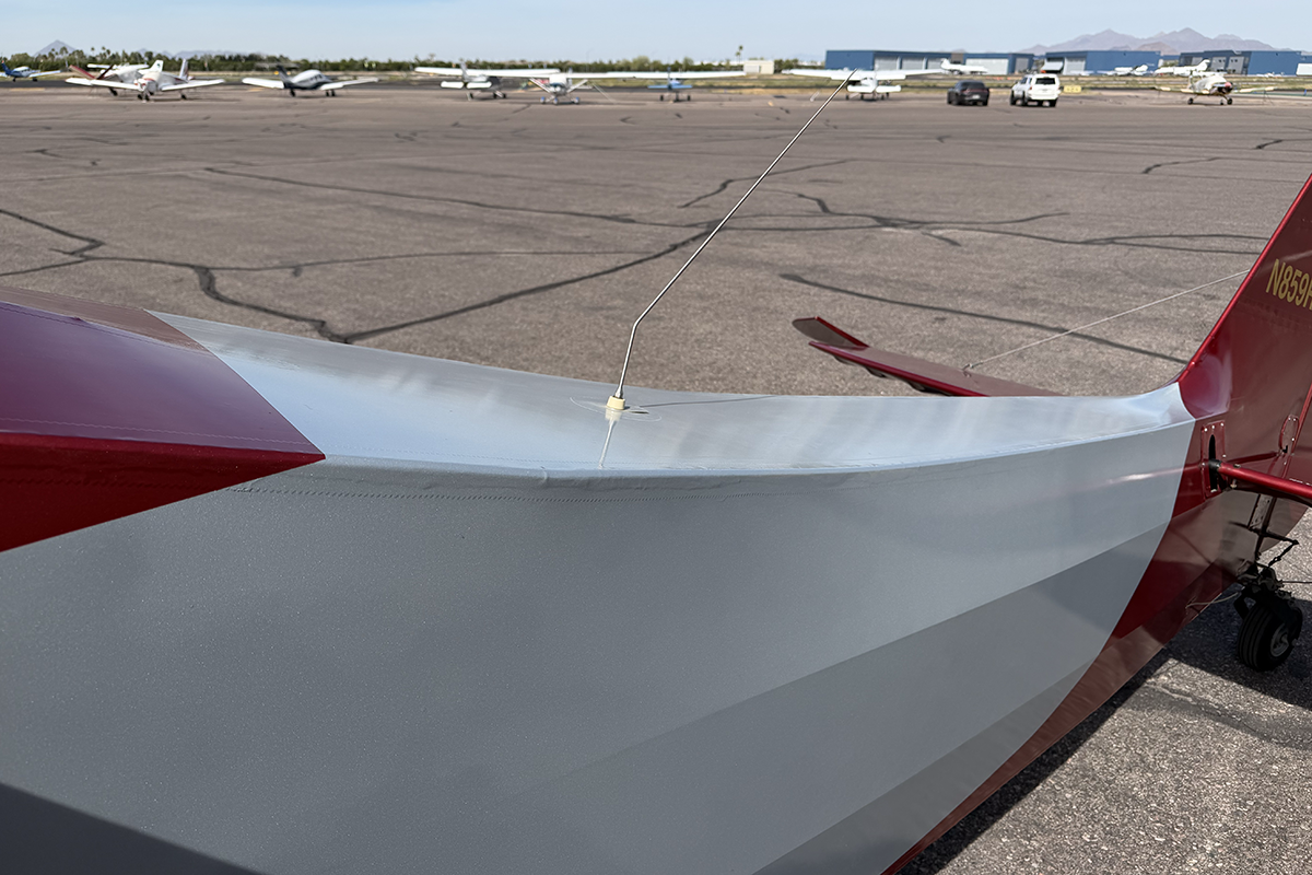 Something that caught my eye on the painted carbon fiber wing tips is a built-in flat area designed for wing tip lights. That area is void of lights, no doubt part of the strict effort the builder made to make this aircraft as light as possible.