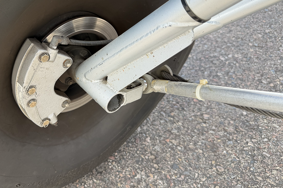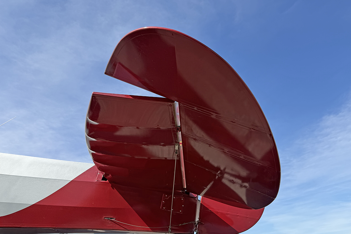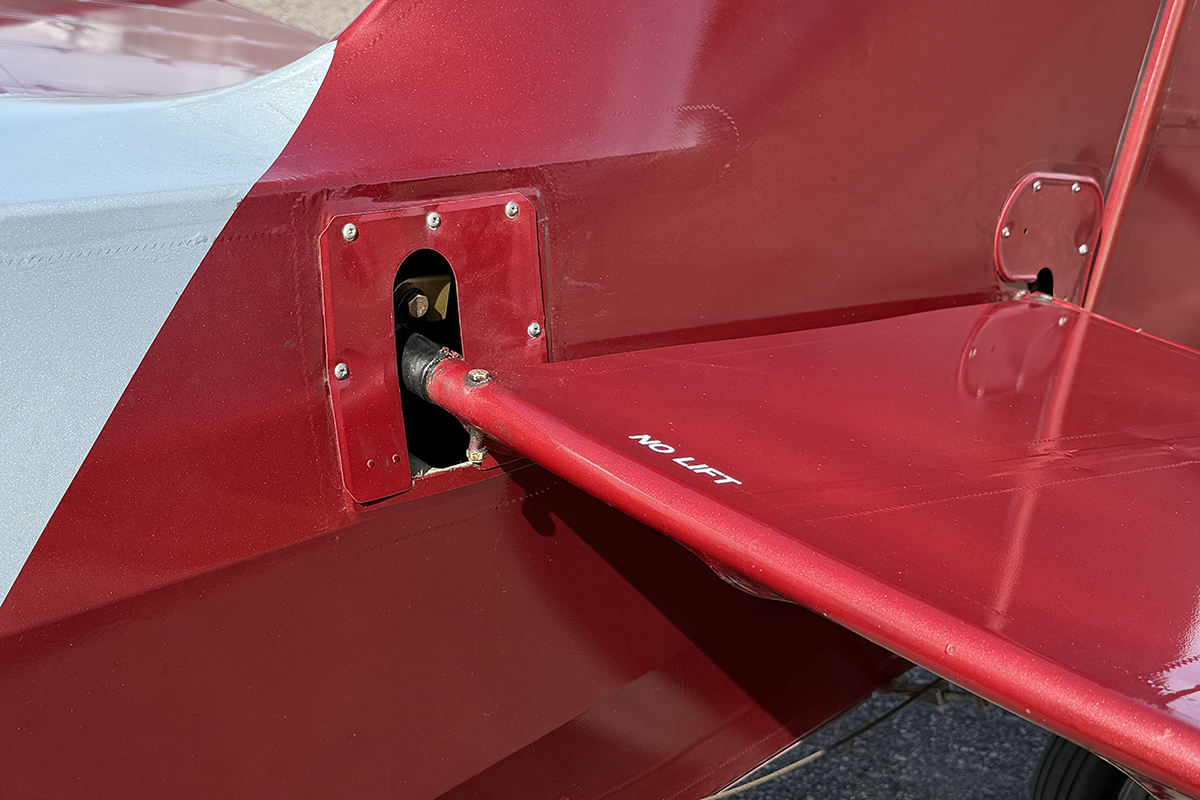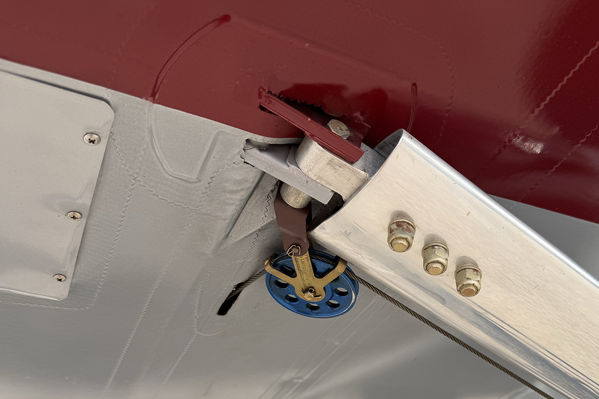 N859RK has a fantastic mechanism for dumping flaps after landing. While flaps are set using a traditional lever (similar to what's found in a Super Cub), flaps are retracted using a trigger on the control stick. STOL pilots, especially competitors, will find this very useful on landing. Flap retraction is rapid, which is ideal for immediately transferring wing lift to weight on the wheels.