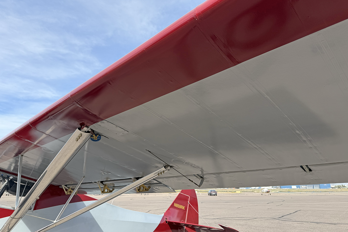 Exterior - The exterior of N859RK is minimalist and in great condition. During the intake process, I didn't notice anything negative that caught my eye. Fabric is in good condition. I observed no hangar rash or evidence of damage. Paint appears to be high quality and in good condition, depsite being a bit dusty at the time I did the photography. The aircraft has always been hangared, so cosmetics are good.