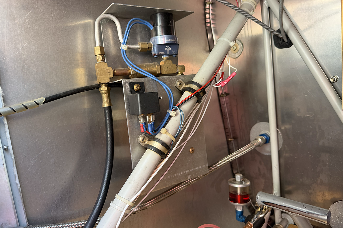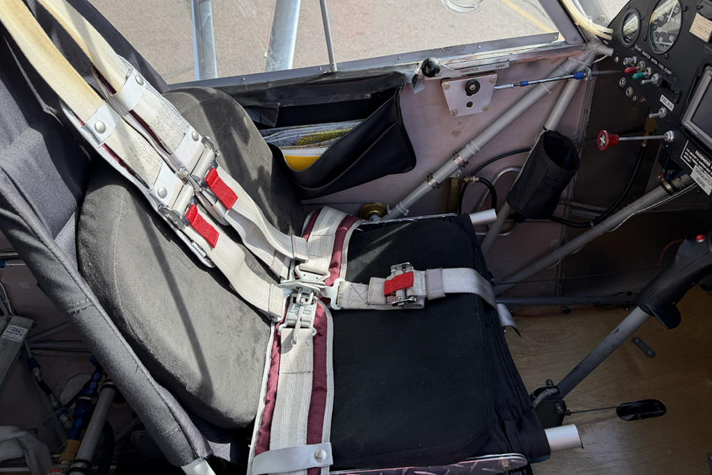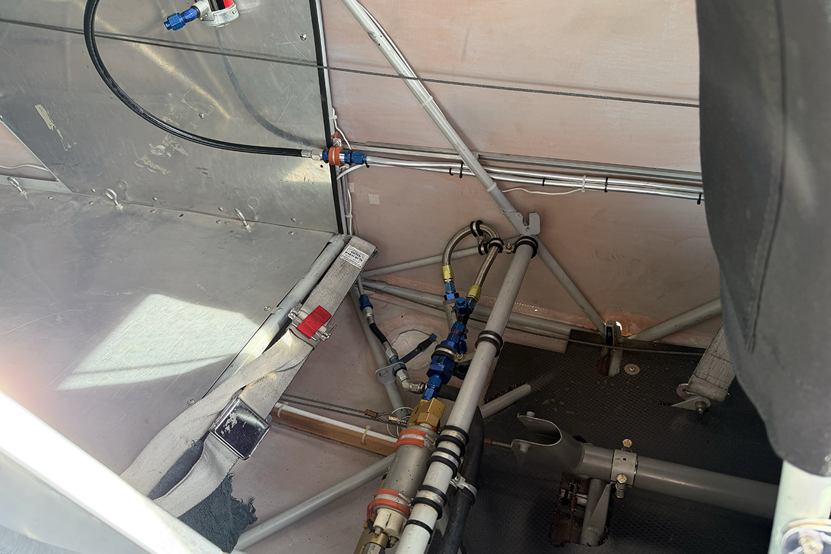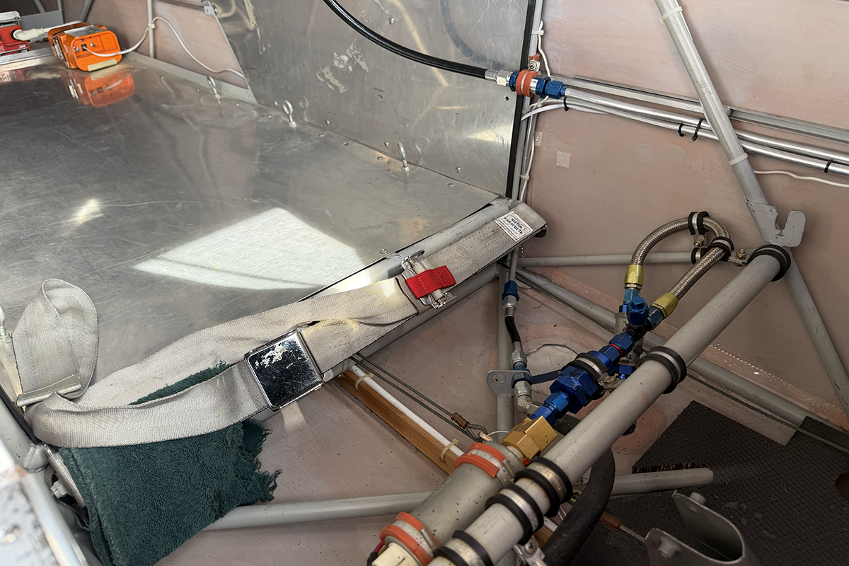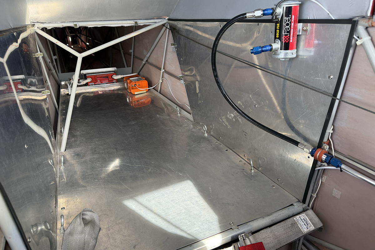 The aft portion of the interior is fitted for an additional fuel tank, complete with lines and a pump. This gives the pilot the option to mount an optional fuel tank in back, extending the range of the aircraft.