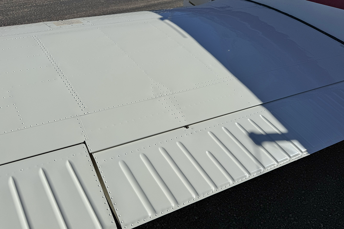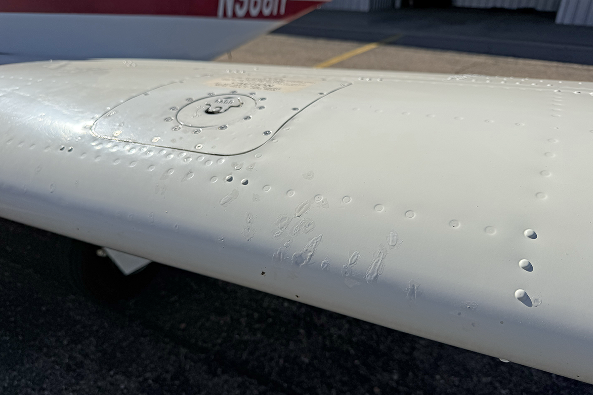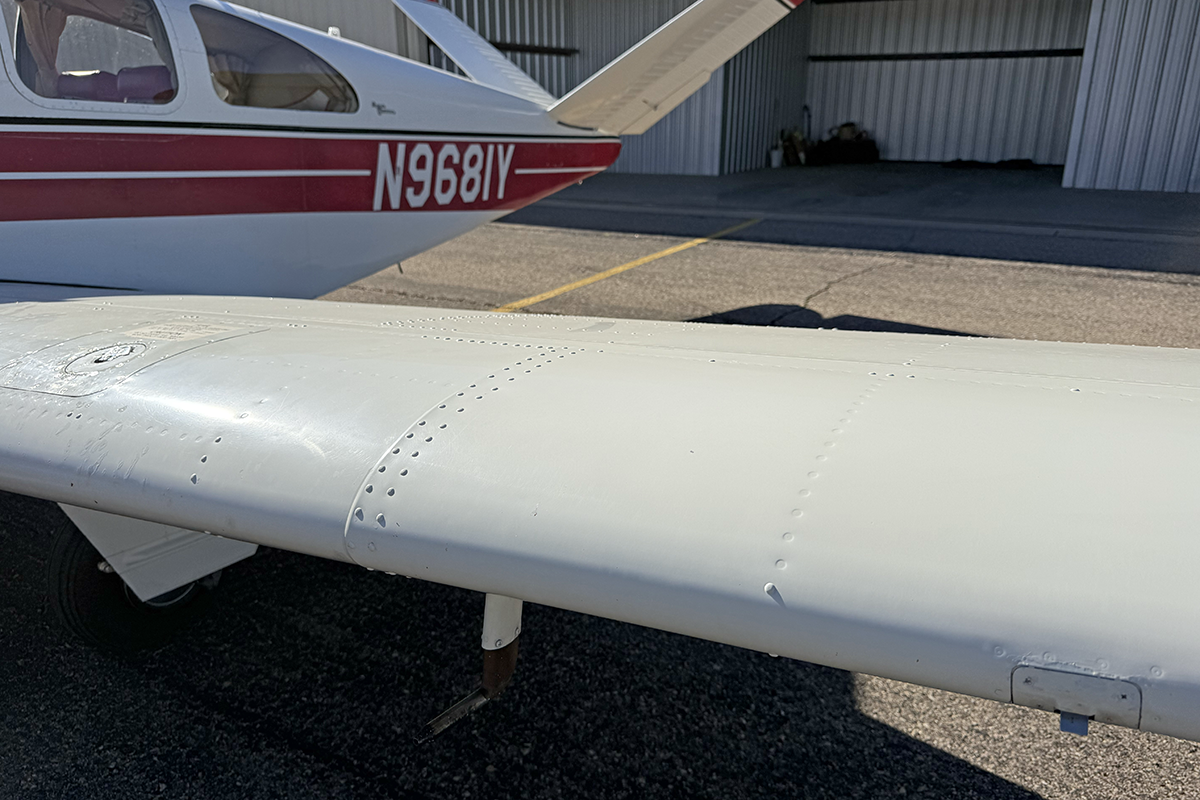 Exterior - During the intake walkaround of N9681Y, I was amazed at how clean and undamaged the exterior aluminum is. I saw no evidence of hail damage or hangar rash. The leading edges and control surfaces look clean and in nice shape.